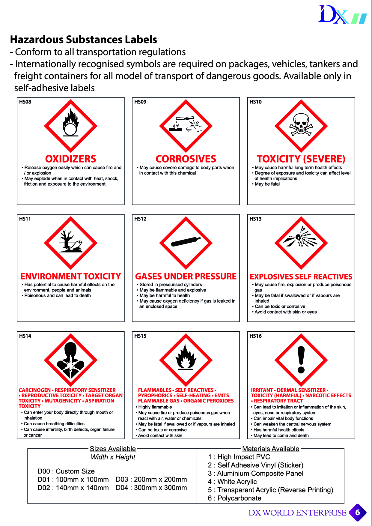 – Internationally recognised symbols are required on packages, vehicles, tankers and freight containers for all model of transport of dangerous goods. Available only in self-adhesive labels.