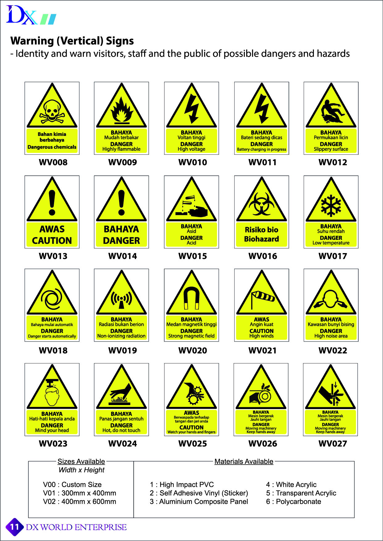 – Perfect for areas and situations where more than one safety message is required.